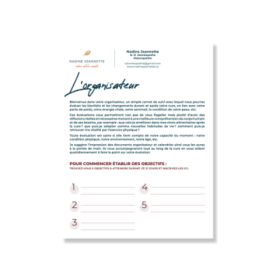 Suivez vos objectifs, mensurations et qualité de sommeil dans un organisateur pour évaluer les bienfaits de votre cure.