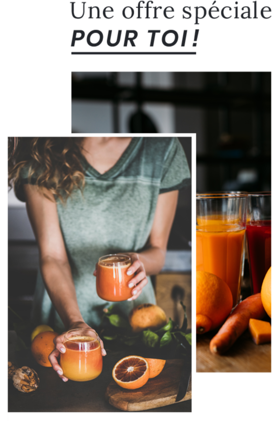 Tout au long de ton expérience, je te guiderai, en plus de t'offrir de délicieuses recettes de jus de fruits et de légumes!